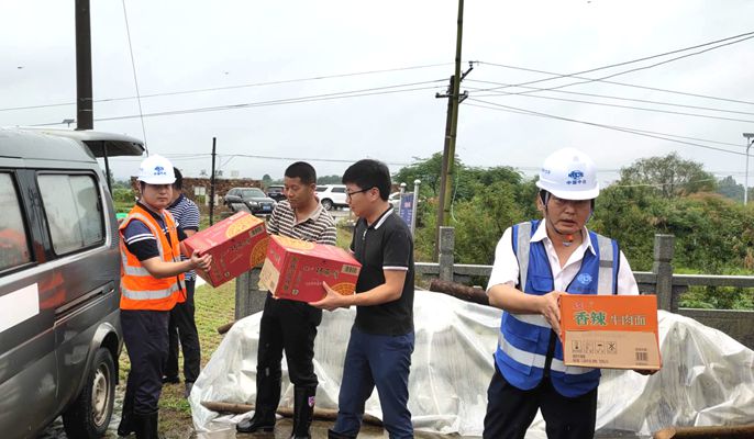在堤岸旁,项目部向值守在第一线的护堤人员送去了西瓜、矿泉水、方便面、牛奶等慰问物品,并真诚的感谢大家在防汛期间的辛苦付出,为值班人员送去了央企的关心和温暖。