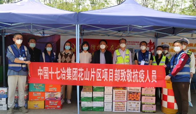 在慰问活动现场,马鞍山市花山区委常委彭冬与十七冶党群工作部副部长李静、中冶置业(安徽)公司工会主席赵慧慧来到防疫管控一线,向在一线执勤的防疫人员表达了十七冶的关心和问候,感谢他们履职尽责,日夜坚守岗位,为全市人民筑起了最关键的安全防线。
