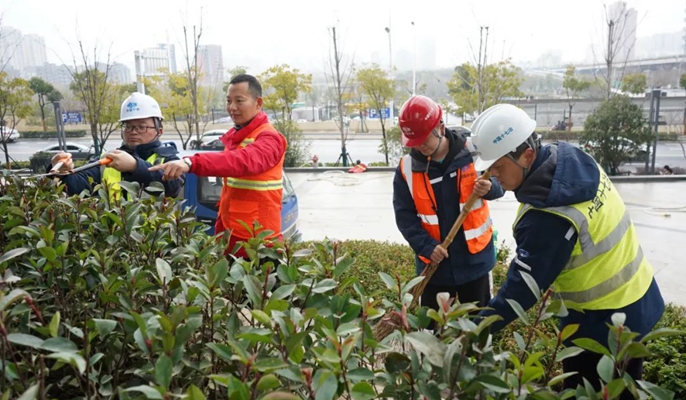 近日受低温天气、植被品种影响,庐阳区市民中心广场花坛绿植品质有所下降。在得知情况后,合肥五里片区G地块项目党支部迅速行动、精细策划,制定了针对性强、可实施性高的绿化提升方案。在修复过程中,党支部党员全数出动,组织33名经验丰富的绿化工人,准备了红叶石楠、金森女贞等品种共计7千余株绿植及修剪机、抽水机、洒水车等机械车辆,为顺利完成修复工作提供了坚实保障。经过一天的加急修复,广场花坛“旧貌”换“新颜”,呈现一片生机盎然、欣欣向荣的景象。“人人参与创城,处处遇见文明。能够为社会做一些有意义的事情,我们感到非常的光荣与自豪,希望通过党支部的点滴行动,为我区文明创建贡献一份绵薄之力。”项目党支部书记说道。