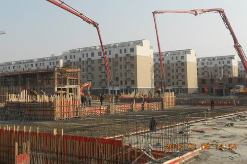 该工程于2011年11月2日正式开挖,达成公司精心组织施工工作,采取分段施工,交叉作业,克服土石方爆破及开挖工期容易误工的难点,施工团队发扬“高效严谨、精细务实”的企业作风,合理制订工程网络节点,优化劳动力资源配置,使工程进度顺利向前推进。于12月10日晚上6点,开始浇筑车库1-6线的基础底板混凝土,又经过近一个月的共同努力,2#车库终于迎来了结构封顶的时刻。