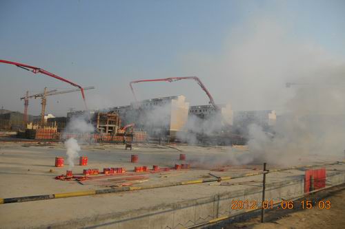 2012年1月6日15时8分,2#车库现场礼花满天,掌声阵阵,车库迎来了6-10线顶板的混凝土浇筑施工。经过施工人员近10个小时的施工,直至当天晚上12时,顺利完成748m3混凝土的浇筑,也宣告了公司承建的银塘2#地下车库主体完工,提前完成了年前的进度计划。该项目的工程质量受到监理、质监站及业主的一致好评,为公司赢得了美誉。