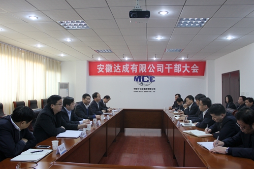 2015年1月17日下午,安徽达成建筑安装工程有限公司召开干部大会,中国十七冶集团董事长、党委书记喻世功,总经理、党委副书记刘安义,常务副总经理、纪委书记、工会主席彭毅忠,副总经理唐灶荣,组织文化部部长杨绍凤,人力资源部部长魏致家出席会议。达成公司领导班子成员以及机关、基层处厂主管级以上管理人员参加了干部大会。