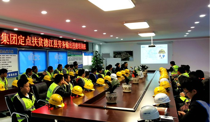 德江县是中国五矿集团定点扶贫点,中冶集团相关单位以各种方式开展扶贫工作。中国十七冶集团不仅派出挂职干部驻点扶贫,还以促进就业的形式来帮助贫困群众脱贫,积极向他们提供就业岗位。十七冶教育培育中心响应上级党委扶贫攻坚的要求,组织培训团队奔赴施工现场,为这批贫困群众开展岗前培训。