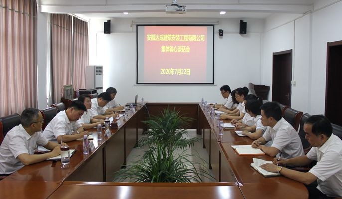7月22日上午,安徽达成建筑安装工程有限公司召开2020年年中工作会议,公司领导班子成员和全体员工参加了会议。